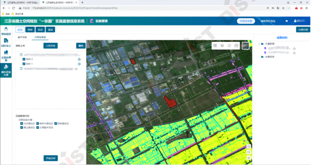 基于全省國(guó)土空間規(guī)劃“一張圖”,建立專項(xiàng)規(guī)劃的橫向銜接機(jī)制,提供多場(chǎng)景的合規(guī)性審查,支撐交通、水利、風(fēng)景區(qū)、開(kāi)發(fā)區(qū)等合規(guī)性審查,提前發(fā)現(xiàn)沖突、矛盾協(xié)調(diào),保障發(fā)展,共繪“多規(guī)合一”藍(lán)圖。