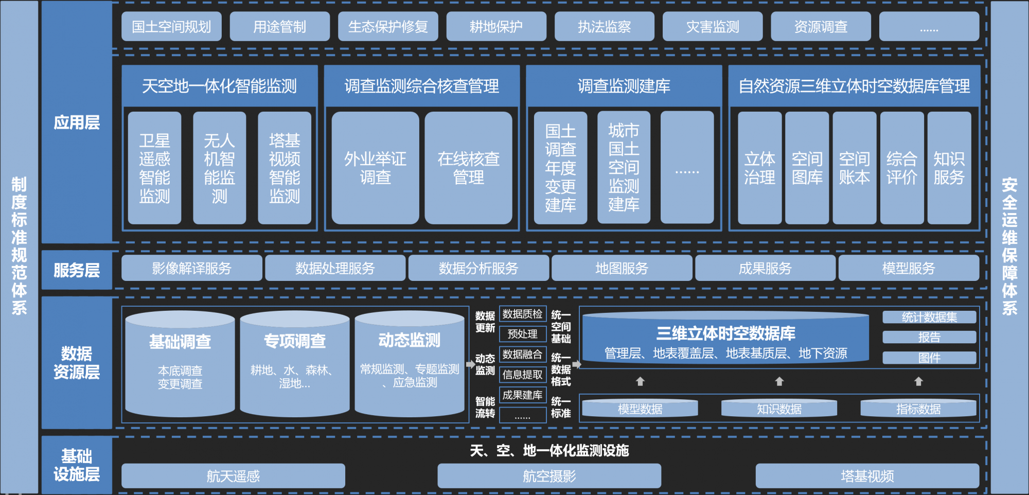 綜合利用“空天地網(wǎng)”一體化分布式計算等新技術(shù),構(gòu)建自然資源要素協(xié)同監(jiān)測與信息快速提取能力,實現(xiàn)自然資源變化要素自動化、批量化、快速可靠提取。