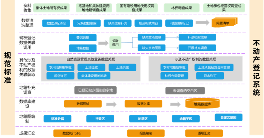 全面收集整理宅基地、建設(shè)用地等地籍調(diào)查成果,清洗數(shù)據(jù),按類形成問(wèn)題清單。關(guān)聯(lián)登記與地籍調(diào)查數(shù)據(jù),補(bǔ)充缺失信息和圖形。收集自然資源管理及不動(dòng)產(chǎn)權(quán)利相關(guān)業(yè)務(wù)數(shù)據(jù),整理后編制不動(dòng)產(chǎn)單元代碼并關(guān)聯(lián)入庫(kù)。對(duì)缺失圖形的宗地及地籍空白區(qū)開(kāi)展補(bǔ)充調(diào)查,建設(shè)地籍?dāng)?shù)據(jù)庫(kù),實(shí)現(xiàn)一體化管理,按規(guī)范生成地籍圖并匯交成果。通過(guò)地籍圖編制全流程作業(yè),夯實(shí)完善地籍?dāng)?shù)據(jù),建立健全地籍?dāng)?shù)據(jù)庫(kù)。