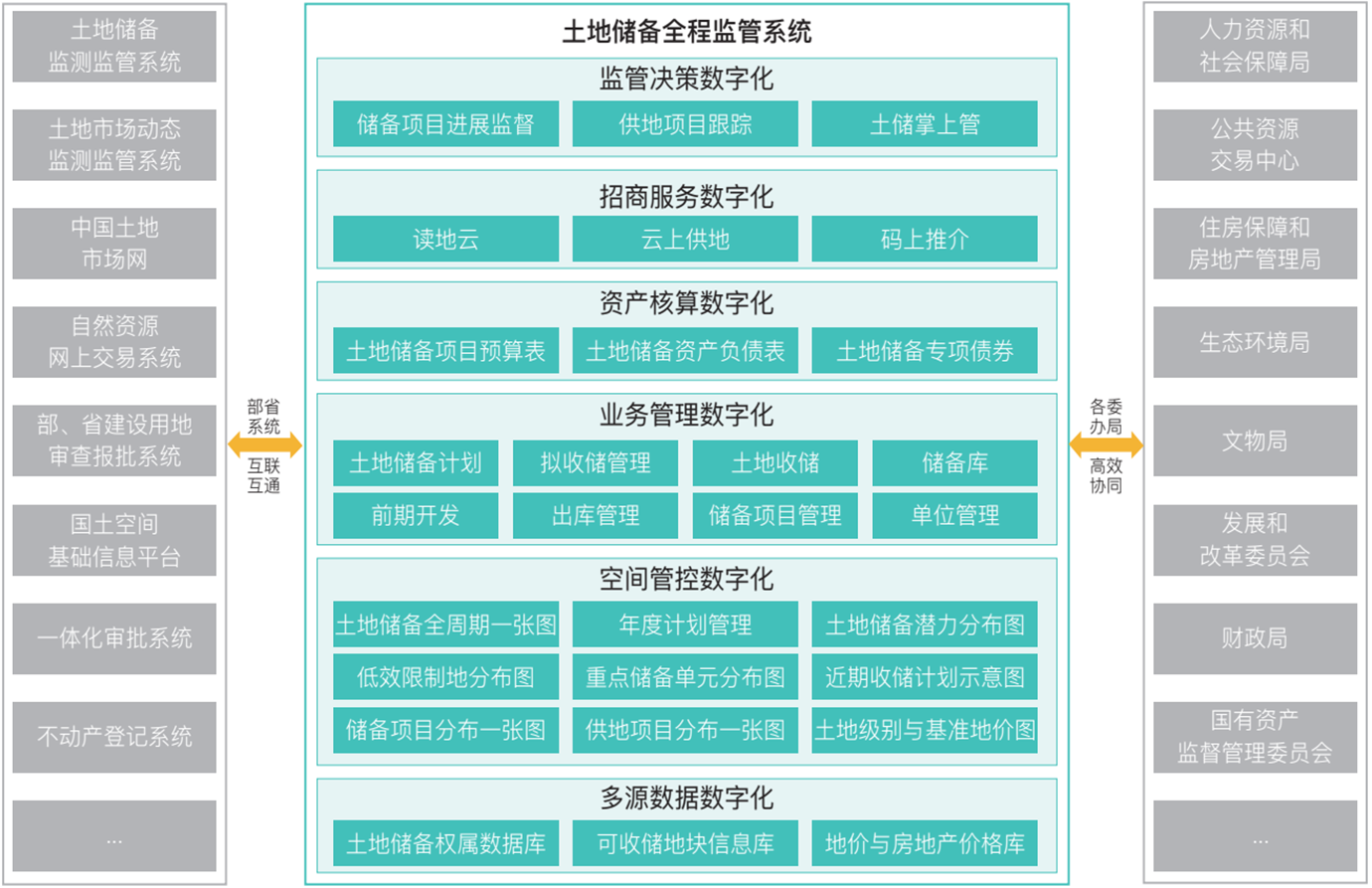 以業(yè)務(wù)工作流為導(dǎo)向,對計(jì)劃編制、土地收儲、前期開發(fā)、預(yù)出庫、出庫等實(shí)行全生命周期數(shù)字化精細(xì)化管理,通過對每個(gè)階段的數(shù)據(jù)、流程、資產(chǎn)、屬性等信息的記錄,以及與部省相關(guān)業(yè)務(wù)系統(tǒng)的互聯(lián)互通,實(shí)現(xiàn)貫穿用地報(bào)批、土地征收、土地儲備、土地供應(yīng)、土地利用開發(fā)全流程的管理。