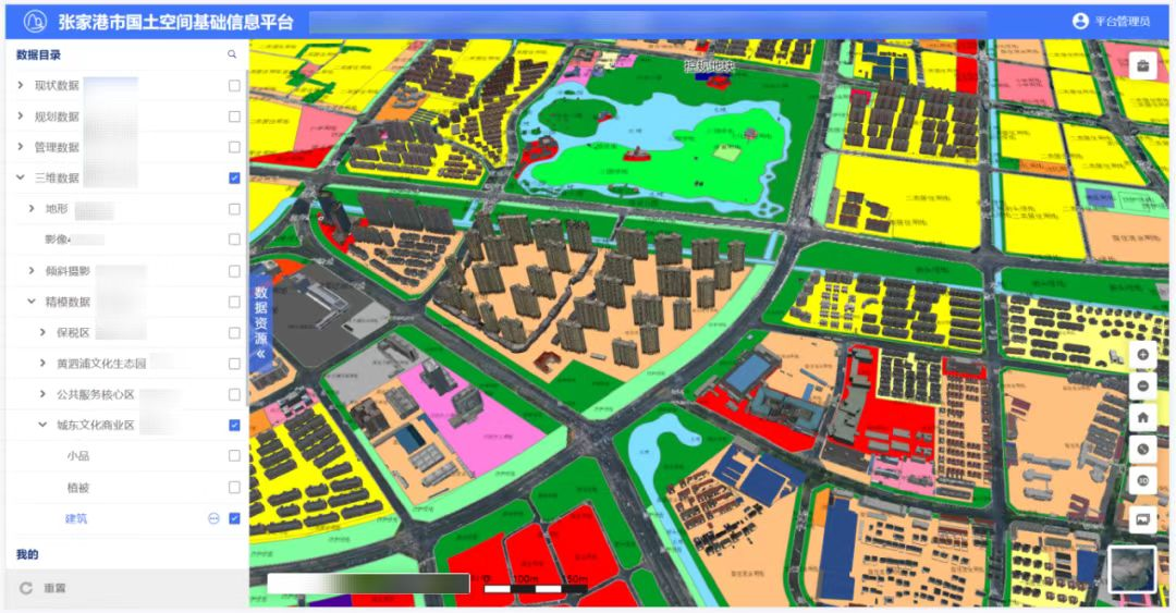 面向新時(shí)期國土空間治理新挑戰(zhàn)、業(yè)務(wù)管理新要求,張家港市國土空間基礎(chǔ)信息平臺立足實(shí)際情況,對自然資源多源大數(shù)據(jù)進(jìn)行匯聚、分析、處理,匯集了現(xiàn)狀、規(guī)劃、管理、社會經(jīng)濟(jì)4大類、24中類、510個(gè)專題圖層,接入了地形、傾斜攝影三維模型、點(diǎn)云、精模、白模等三維數(shù)據(jù),整體形成了融合地形級、城市級、部件級實(shí)景三維的張家港市自然資源三維立體“一張圖”。