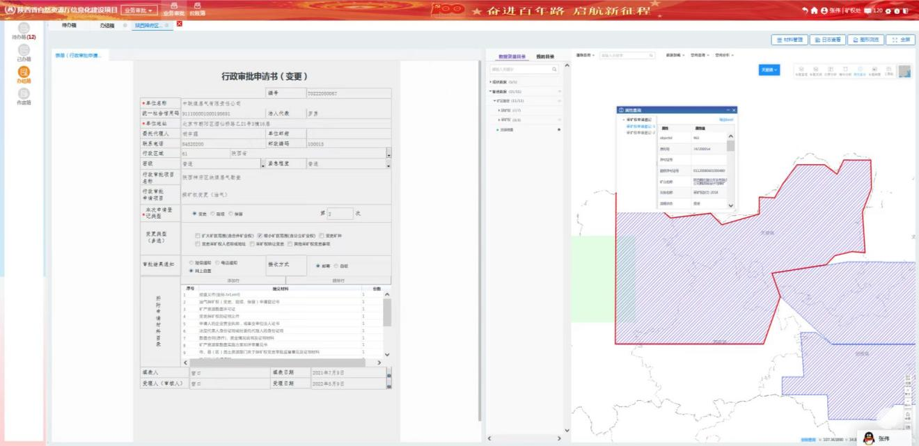 按照陜西省信息化頂層設(shè)計(jì),在基礎(chǔ)信息平臺(tái)自然資源調(diào)查監(jiān)測(cè)、監(jiān)管決策、政務(wù)服務(wù)和防災(zāi)減災(zāi)四大應(yīng)用體系的基礎(chǔ)上,將各類審批管理系統(tǒng)納入平臺(tái),實(shí)現(xiàn)平臺(tái)統(tǒng)一認(rèn)證,統(tǒng)一登錄,統(tǒng)一門(mén)戶,強(qiáng)化業(yè)務(wù)中臺(tái)作用,促進(jìn)政務(wù)協(xié)同?;谄脚_(tái)提供的“一張圖”應(yīng)用共享服務(wù),植入政務(wù)審批系統(tǒng)的帶圖審批的相關(guān)工作場(chǎng)景,實(shí)現(xiàn)平臺(tái)與業(yè)務(wù)系統(tǒng)的銜接,同時(shí)按照各類業(yè)務(wù)全流程審批需求,針對(duì)各處室定制化開(kāi)發(fā)重疊分析、地類統(tǒng)計(jì)、項(xiàng)目查詢、shp導(dǎo)出、匯總統(tǒng)計(jì)等功能,有效支撐廳內(nèi)審批辦件共計(jì)700余個(gè),極大的提升了政務(wù)審批效率,實(shí)現(xiàn)信息共享、業(yè)務(wù)協(xié)同、場(chǎng)景聯(lián)動(dòng)。